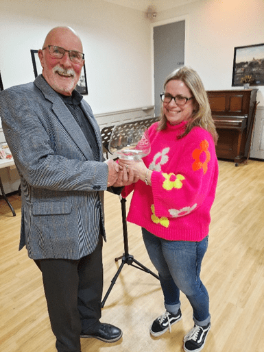 Kate (Barwell SC) winner of the Speech competition receiving the trophy from Sarah.