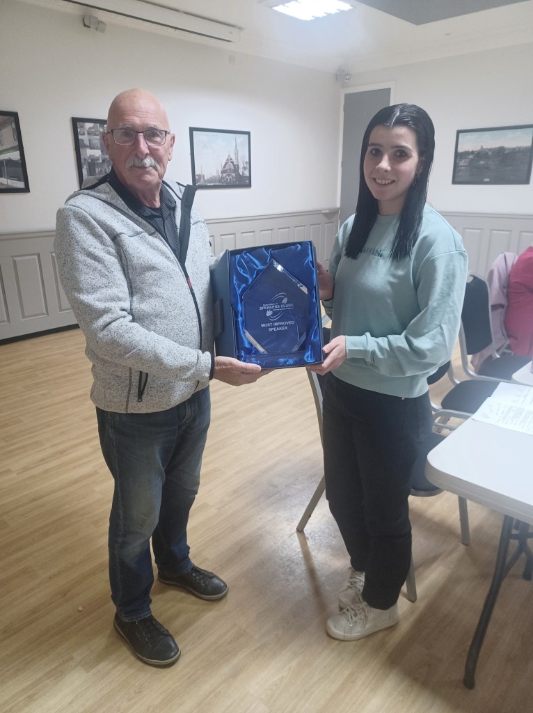 Congratulation to Abi who is pictured below receiving the Most Improved Speaker trophy from Allan